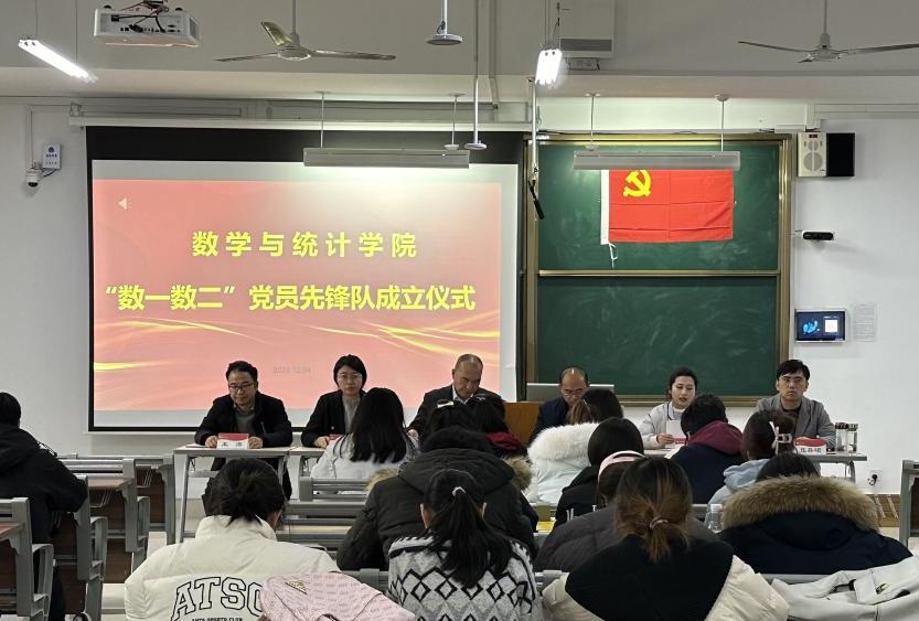 124日下午,数学与统计学院在增信楼3516教室举办“数一数二”党员先锋队成立仪式。数学与统计学院党政领导及学生党员参加本次大会党委副书记王高升主持了仪式。