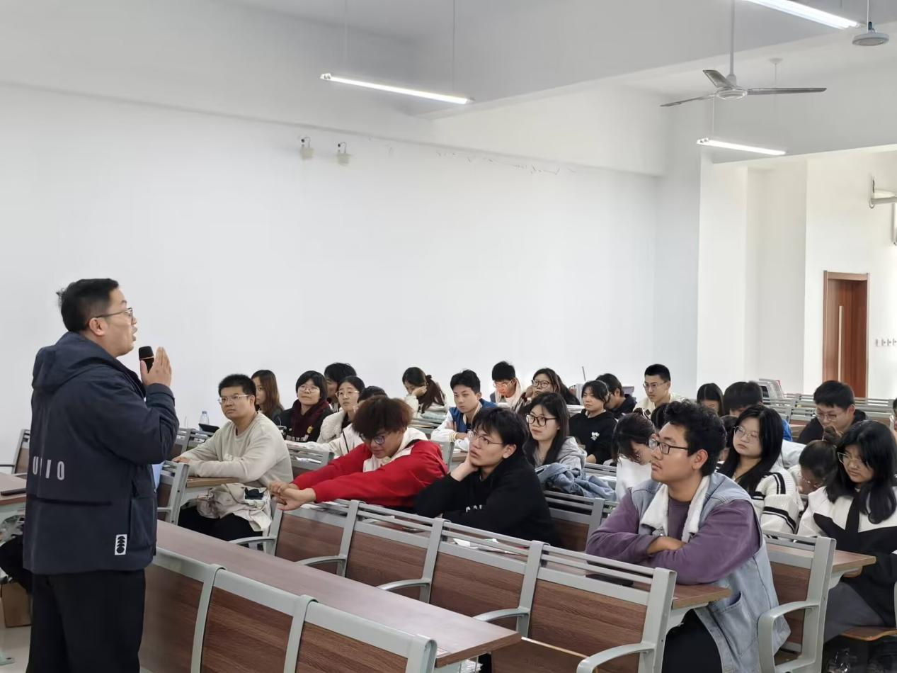 11 月 11 日今年会官网在增信楼516举办优秀校友专题报告会,邀请优秀校友李泰禹返校做报告,2025届毕业生参加。