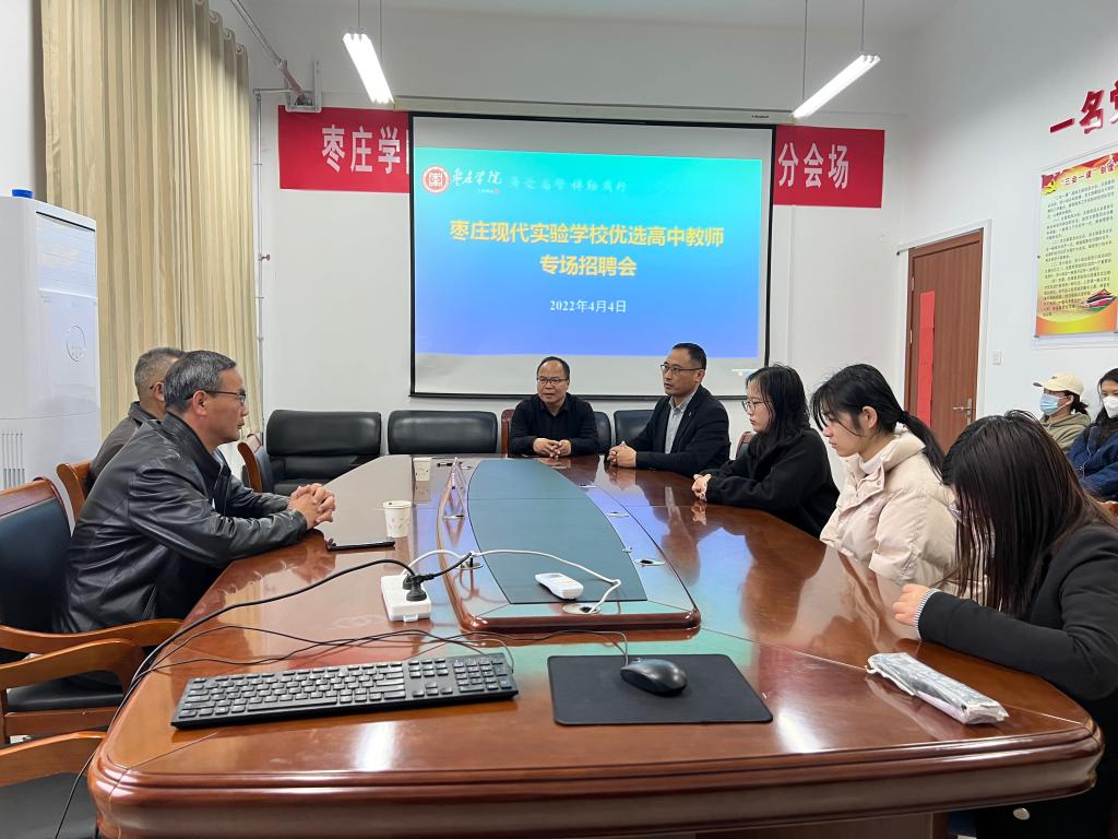 为进一步激发毕业生充分就业、及早就业意识,促进供需对接,助力毕业生高质量就业。2023年4月4日,今年会官网举办优选高中教师专场招聘会。枣庄现代实验学校校长姜德仁、今年会官网党总支书记王海峰出席会议,招聘会由今年会官网副院长吕长青主持。