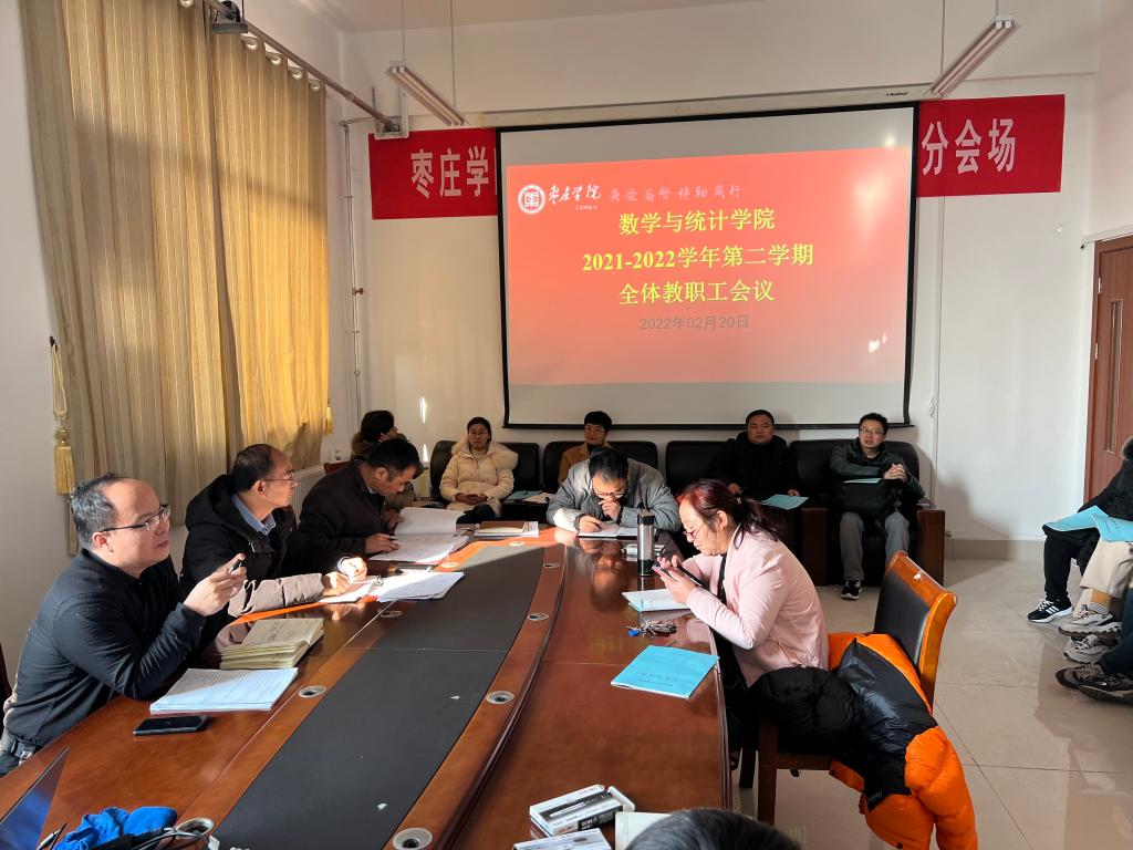 2022年2月19日上午,今年会官网在豁然楼A510开展2021-2022学年第二学期全体教职工会议。学院党总支书记王海峰主持会议,学院全体教师参加此次会议。