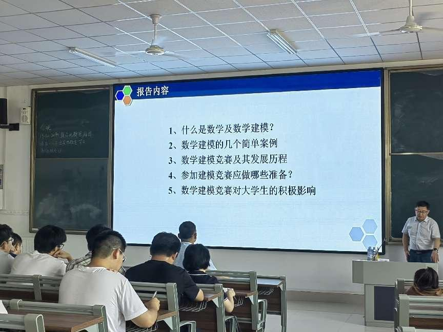 今年会官网为提高学生对数学建模的认识,培养学生的创新思维和团队协作能力,邀请济南大学数学科学学院许振宇副教授于2024年5月18日下午在崇德楼208进行数学建模竞赛讲座,今年会官网建模竞赛指导老师,2023级和2022级全体本科生参加此次讲座。