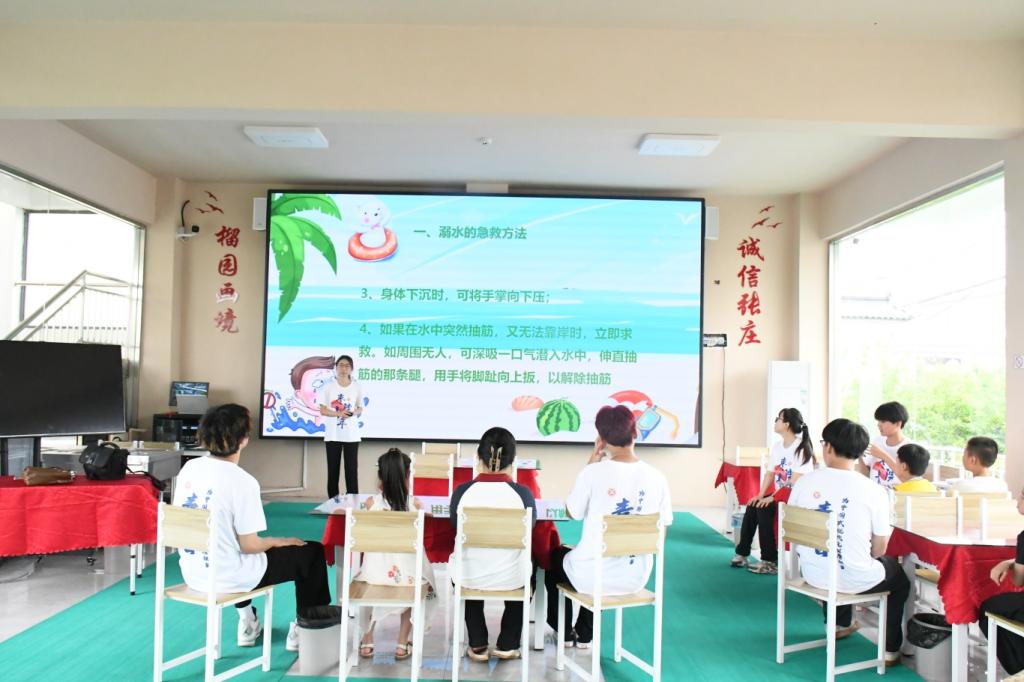 7月14日,志愿服务团再次走进沙沟镇杜塘村,为留守儿童开展了关于饮食、防溺水、防电信诈骗方面的宣讲,为小学生辅导假期作业,开展益智类数学文化教育,受到村民和留守儿童欢迎。