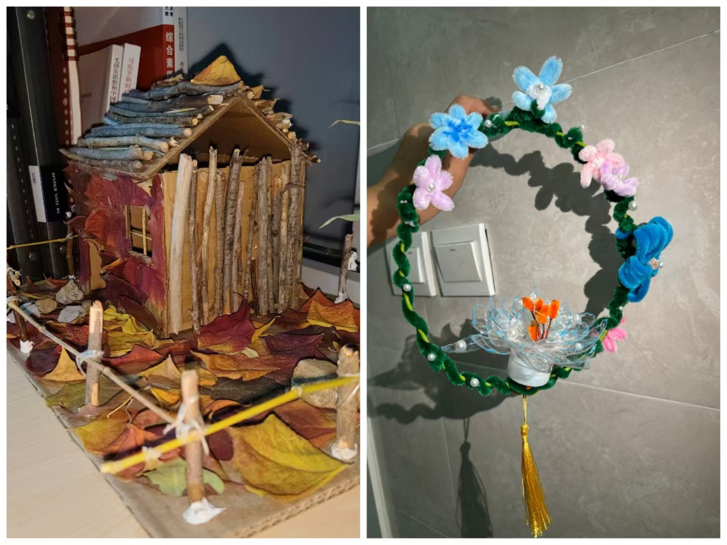 活动分为工艺品评比、环境创意方案设计和绿色校园短视频创作评比。参赛选手采用生活常用废旧物品,凭借个人丰富的想象力、创造力,创意制作出主题鲜明、结构新颖的手工艺品,并通过ppt讲解自己的想法和创意。