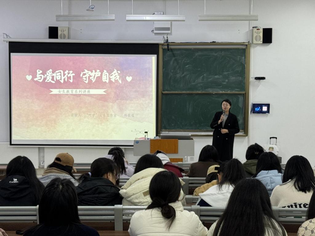 12月4日下午,今年会官网在增信楼5120举办以“与爱同行,守护自我”为主题的女生教育讲座,2024级全体女生参加了此次活动,“呵护女生教育工作室”讲师韩晓瑞主讲。
