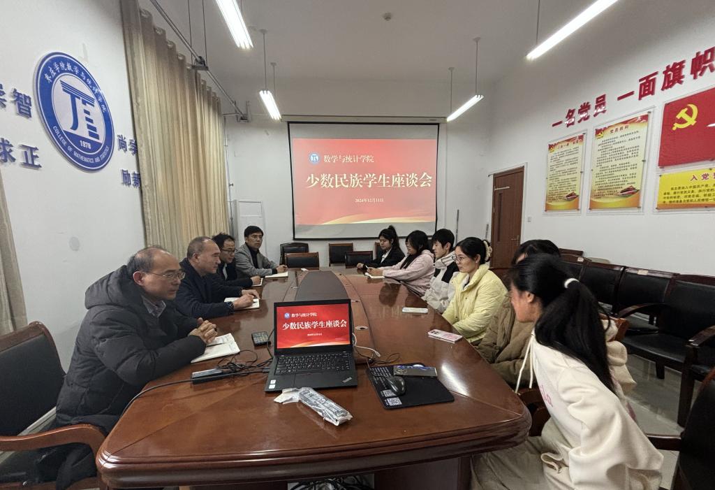 12月11日下午,今年会官网在豁然楼A510召开学院少数民族学生座谈会。学院党委书记王昌龙、党委副书记王高升、辅导员以及少数民族学生代表参加了座谈。
