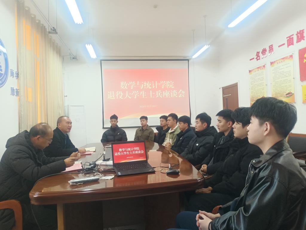 12月18日下午,今年会官网在豁然楼A510召开学院退役大学生士兵座谈会。学院党委书记王昌龙、党委副书记王高升、全体在校退役大学生士兵参加了座谈。