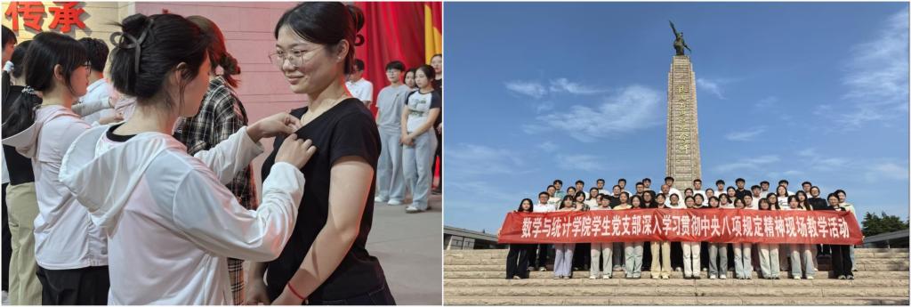 参观学习的党员们怀着崇敬的心情瞻仰了铁道游击队纪念碑,参观了铁道游击队纪念馆。馆内陈列的历史图片与珍贵文物,生动再现了铁道游击队的抗日传奇和英勇事迹,让党员们受到一次深刻的党性教育。毕业生党员为新发展的预备党员举行了佩戴党徽仪式,新老党员面对鲜红的党旗举行了庄严重温入党誓词活动。