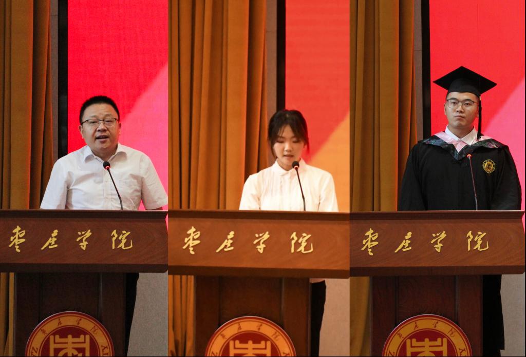 教师代表王振立结合专业发展与育人实践,勉励毕业生以初心致远,以奋斗逐梦;在校生代表周霖表达了最诚挚的祝贺和最美好的祝福,表示将会以师哥师姐们为榜样,努力成为具有社会责任感、创新精神和实践能力的优秀人才;毕业生代表赵月兆分享求学期间的成长感悟,表达了感恩感谢之情,表示要始终以数学的思维洞察世界,以统计的眼光分析人生,在各自的领域里,成为那个最优解!