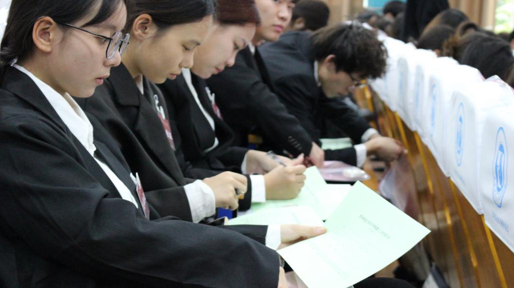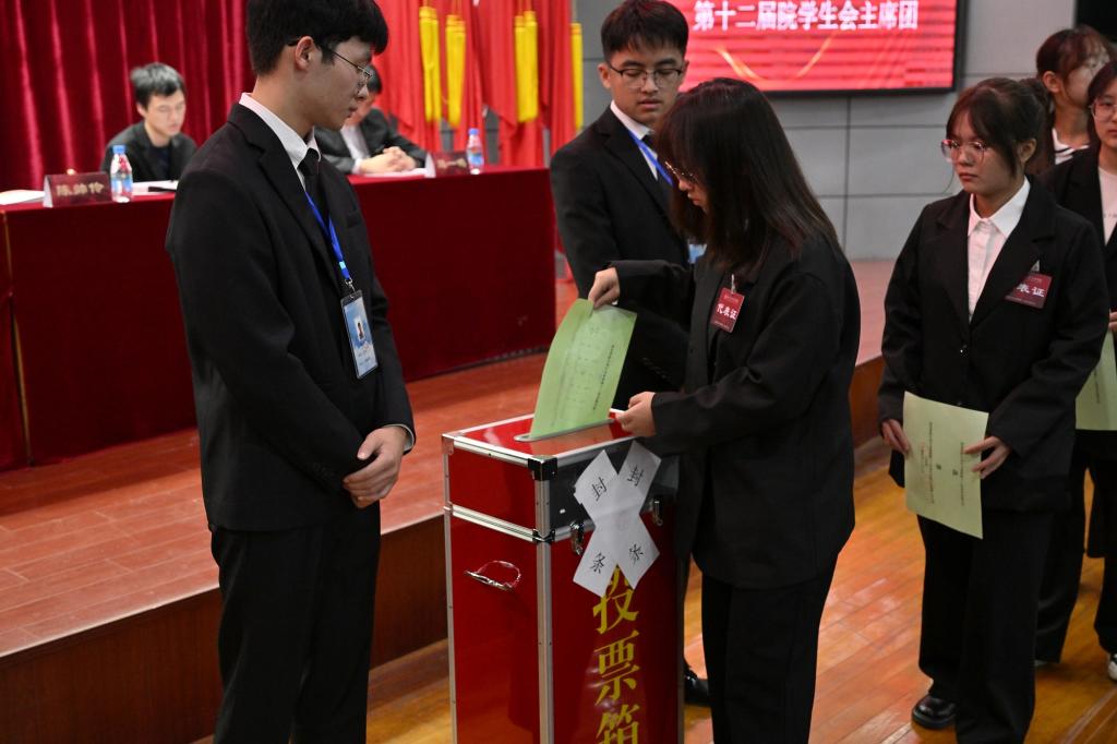 在大会正式会议上,全体代表听取并审议通过了院学生会主席团成员叶航同学所作的《策马扬鞭正当时 矢志笃行立芳华 以青春之我担时代之责》的学生会工作报告以及《bat365在线中国官网登录入口第十二次学生代表大会选举办法(草案)》《bat365在线中国官网登录入口学生会章程(修正案)》《bat365在线中国官网登录入口第十二次学生代表大会提案工作报告》,并选举产生了新一届学生委员会主席团成员。