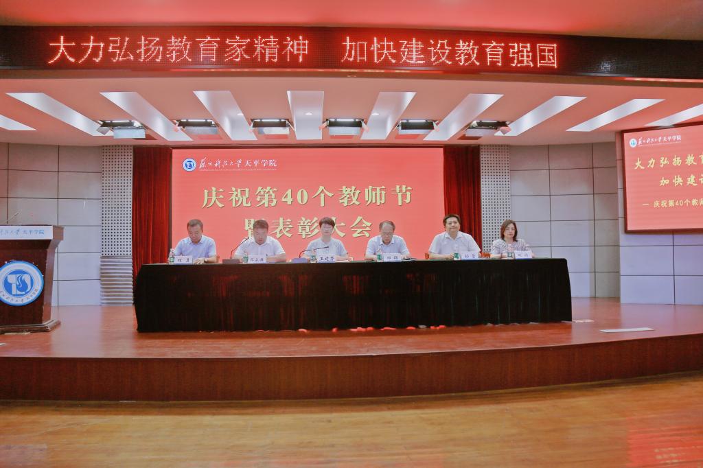 百年大计,教育为本。教育大计,教师为本。为大力弘扬教育家精神,表彰激励广大教师和教育工作者积极投身教育强国建设,9月10日下午,bat365官网在图书馆报告厅召开了主题为“大力弘扬教育家精神,加快建设教育强国”的庆祝第40个教师节暨表彰大会。院领导郑群、王建芳、蒋永旗、孙景、程勇、张婧出席大会。全体中层干部、受表彰的先进个人、教职工代表150余人参加大会。大会由副院长蒋永旗主持。