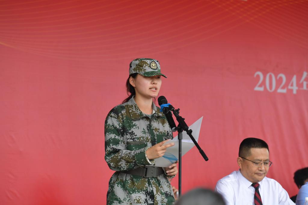 党委副书记程勇同志宣读了《bat365在线中国官网登录入口关于表彰 2024 级新生军训先进集体、优秀个人的决定》,学院授予军训团三营二十五连等2个连队“先进集体”称号,张冉等3名老师“优秀军训工作人员”称号,武文斌等6名辅导员“优秀军训指导员”称号,杨旭等24名教官“优秀教官”称号,姜珊等56名学生“优秀军训学员”称号。bat365官网优秀学员代表汉语2422班姜雨欣发言,她表示在军训中增强了纪律观念和责任意识,提升了军事技能和身体素质,增强了消防安全、防诈骗等方面的知识和能力。