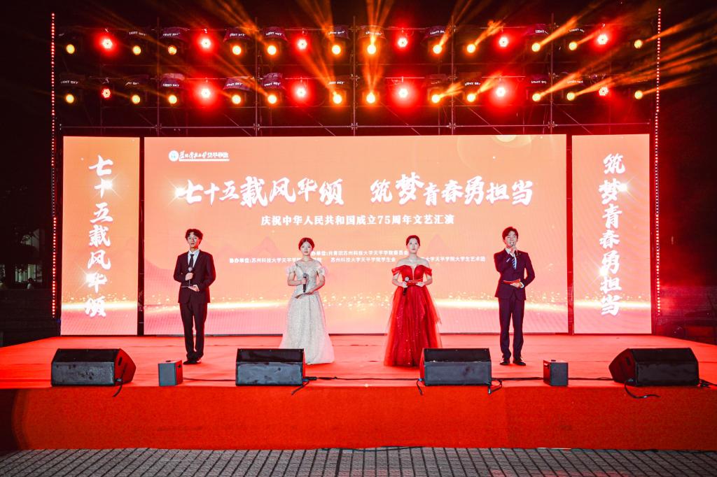 为庆祝中华人民共和国成立75周年,弘扬爱国主义精神,增强天平师生的凝聚力和向心力,9月27日晚,bat365官网“七十五载风华颂 筑梦青春勇担当”庆祝中华人民共和国成立75周年文艺汇演在天平校区图书馆广场举行。bat365在线中国官网登录入口党委常委、宣传部部长朱明珠,党委学生工作部部长、学生工作处处长张承祖,党委人民武装部部长、保卫处处长朱永涛,宣传部部长助理周丽娜,学院党委书记郑群,院长王建芳,副院长蒋永旗,党委副书记、副院长孙景,副院长张婧,各职能部门负责人、二级学院院长及辅导员老师出席本次晚会,与学生们共享视听盛宴。