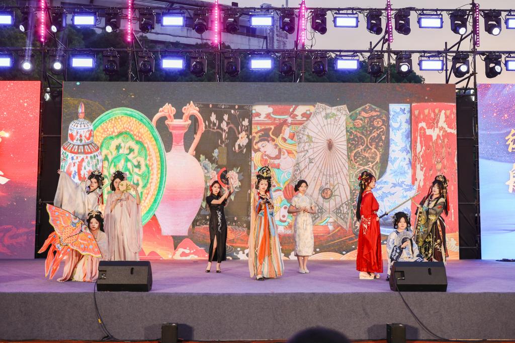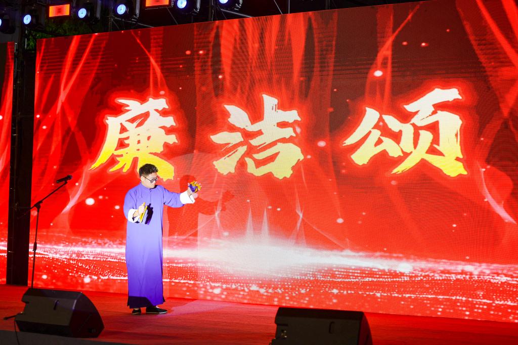 晚会在灯光秀《时空之门》中拉开序幕。乐队演奏《天下》以器乐为笔,音符为墨,用激昂旋律唤醒青年胸怀寰宇。少数民族同学们带来的歌舞表演《大地飞歌》,将个人理想升华为民族腾飞的集体咏叹。古装秀《华裳绮梦》让文物在衣香鬓影间苏醒,将古典华美与现代时尚巧妙融合,展现了中华文化的独特魅力。由朗诵、歌曲融合而成的原创校园情景剧《与青春作别 赴明日之约》引发毕业生们回忆过往的校园生活,刻画了四年校园生活中的点点滴滴。快板《廉洁颂》创新廉政教育形式,为毕业生系好人生第一粒纽扣。