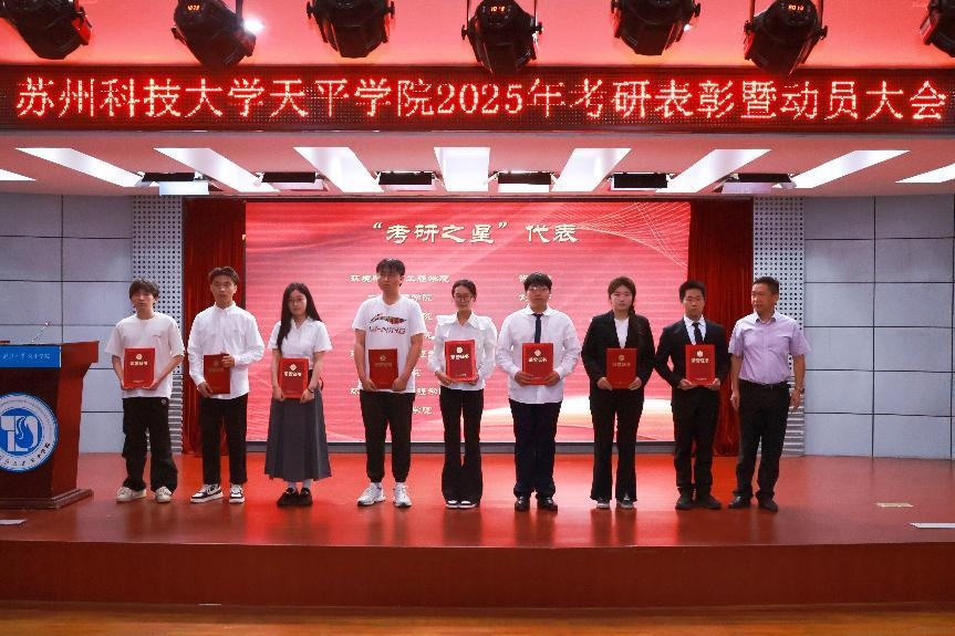 学生处处长曹广勇宣读了《关于表彰2025年考研奖学金获得者的决定》,党委书记夏阳、院长王建芳为获奖学生代表颁发荣誉证书。