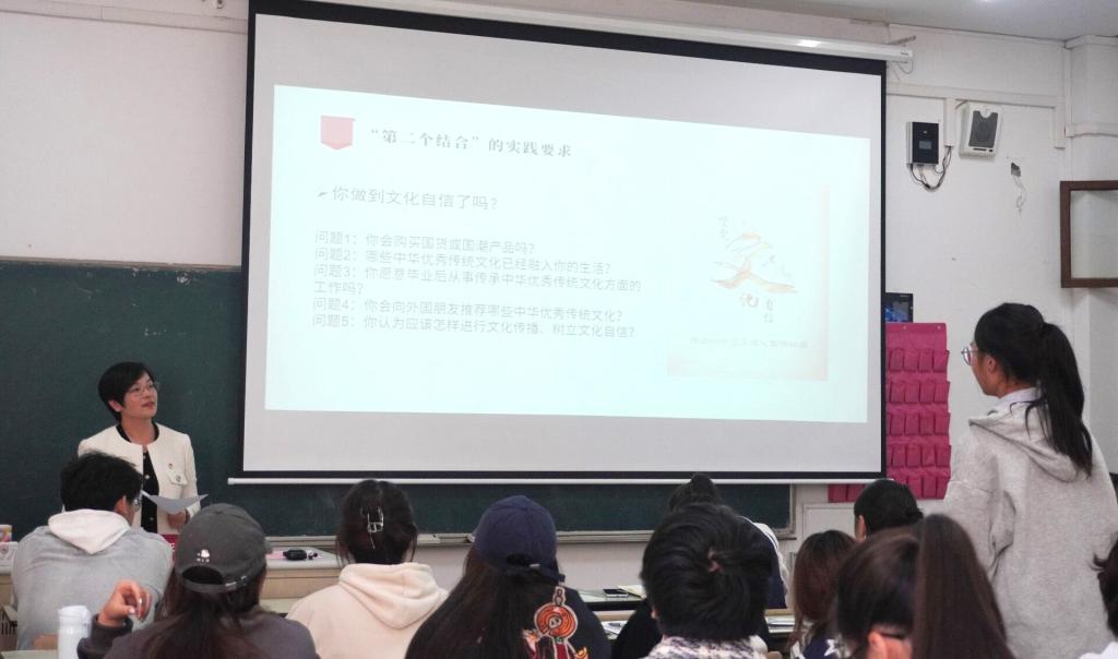 随后,团委书记刘亚男讲授了《深刻理解“第二个结合”的重大意义和实践要求》主题思政课,鼓励广大青年踔厉奋发,勇毅前行,以古之规矩开今之生面,用热爱书写着“第二个结合”的青春篇章。