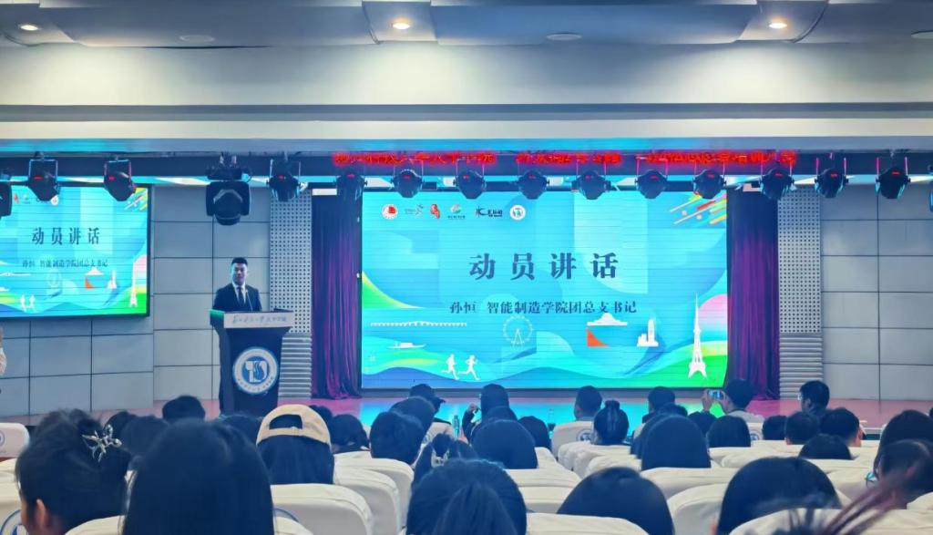 首先由智能制造学院团总支书记孙恒老师发表动员讲话。孙老师鼓励同学们要担当作为、甘于奉献、积极进取、服务全局,用热情服务当好赛事的形象大使,认真完成各项任务,为马拉松赛事的顺利开展贡献自己的智慧与力量。
