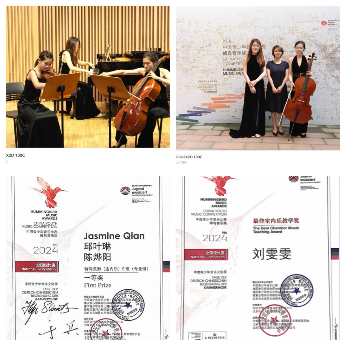 2024年7月21日下午,bat365官网音乐学2322班邱叶琳和音乐学2221班陈烨阳代表江苏赛区参加了第九届中国青少年音乐比赛•蜂鸟音乐奖,获得了室内乐专业组一等奖的好成绩,并获得G.亨乐出版社原作版奖,刘雯雯老师获“最佳室内乐教学奖”。