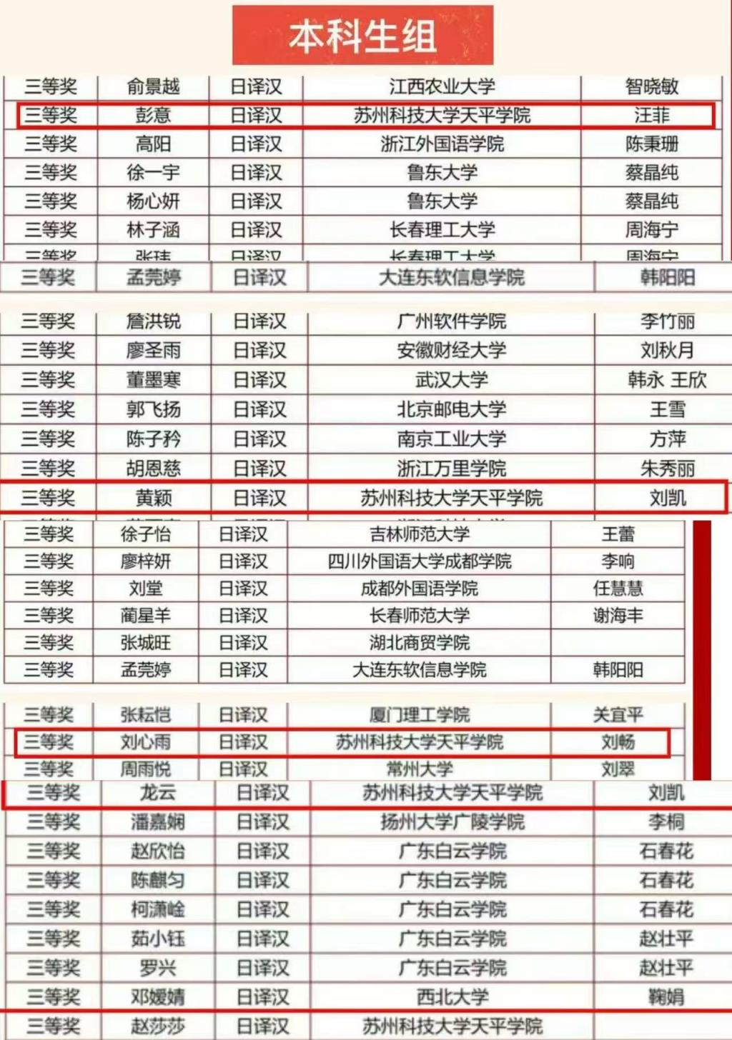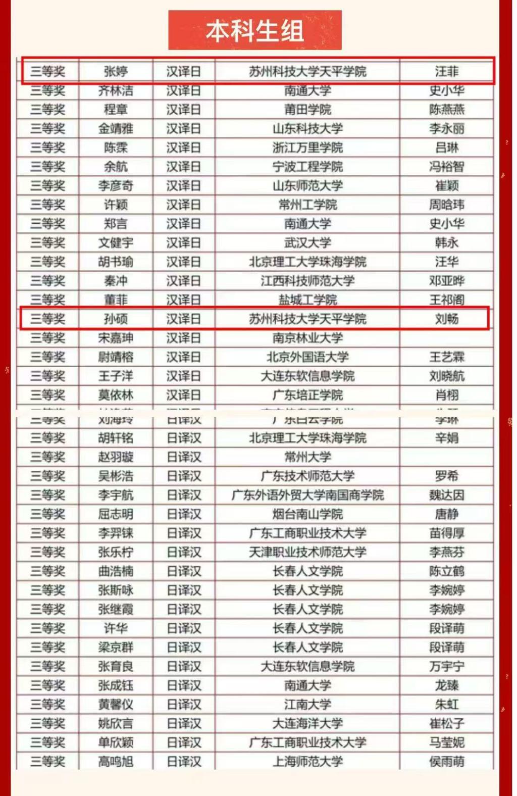 本科组 日译汉 三等奖