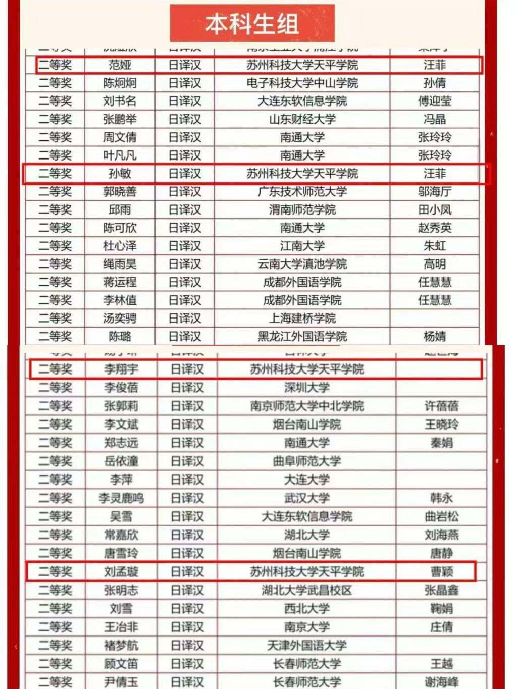 本科组 日译汉 二等奖