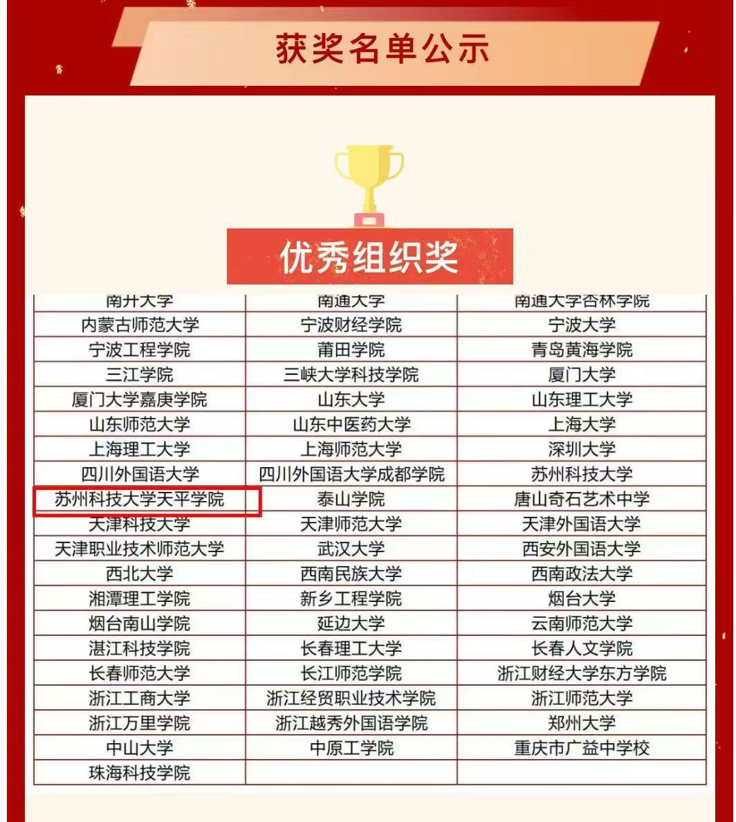 本次大赛吸引了来自南京大学、复旦大学和日本北洋大学等国内外700多所高校、企事业单位的近万名选手参赛。在师生的共同努力下,bat365官网学子在此次大赛中获得多个奖项,其中张婷、孙硕荣获本科组汉译日组三等奖;刘孟璇、李翔宇、范娅、孙敏荣获本科组日译汉二等奖;彭意、黄颖、刘心雨、龙云、赵莎莎荣获本科组日译汉三等奖。指导教师汪菲、刘畅、曹颖、刘凯荣获“优秀指导教师”荣誉称号。此外,bat365官网荣获第七届“人民中国杯”日语国际翻译大赛优秀组织奖。