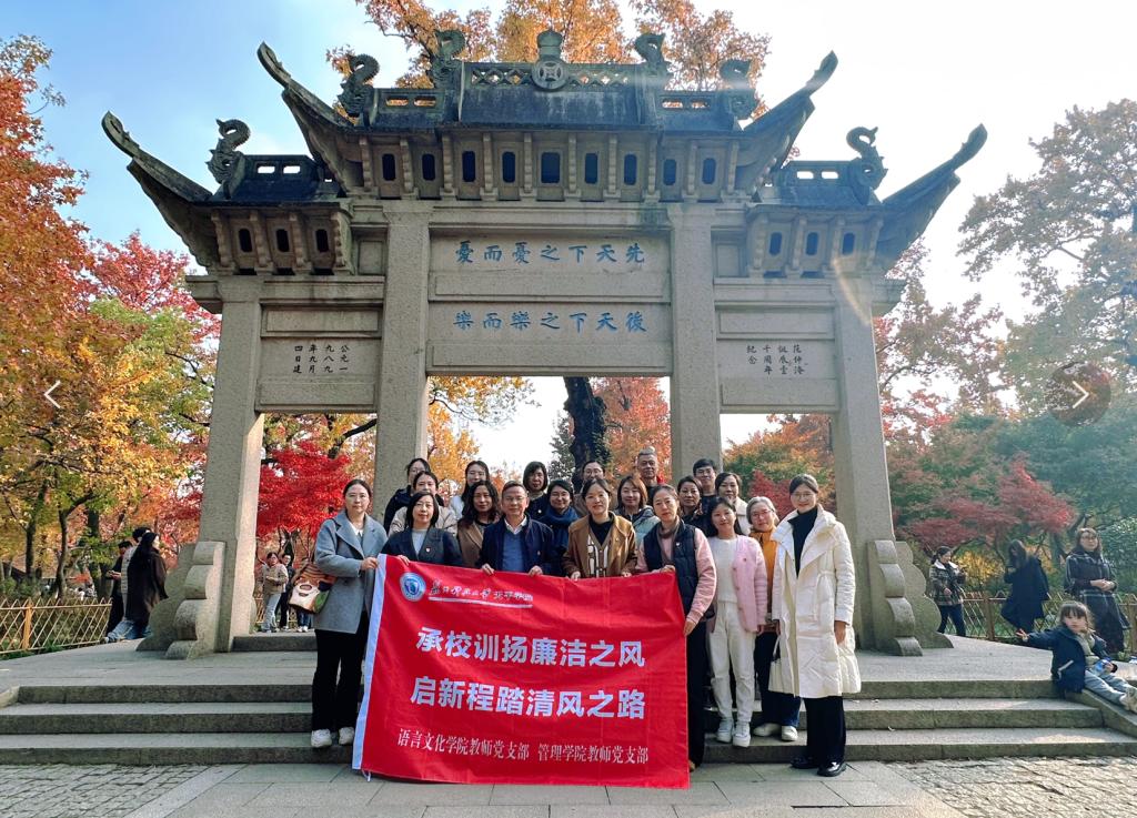 12月6日下午,为深入学习党的二十届三中全会精神,贯彻《关于加强新时代廉洁文化建设的意见》文件精神,结合bat365官网第六届“廉洁文化建设月”的要求,语言文化学院和管理学院教师党支部联合组织开展了以“承校训扬廉洁之风,启新程踏清风之路”为主题的教师党员党风廉政、爱国主义教育活动。