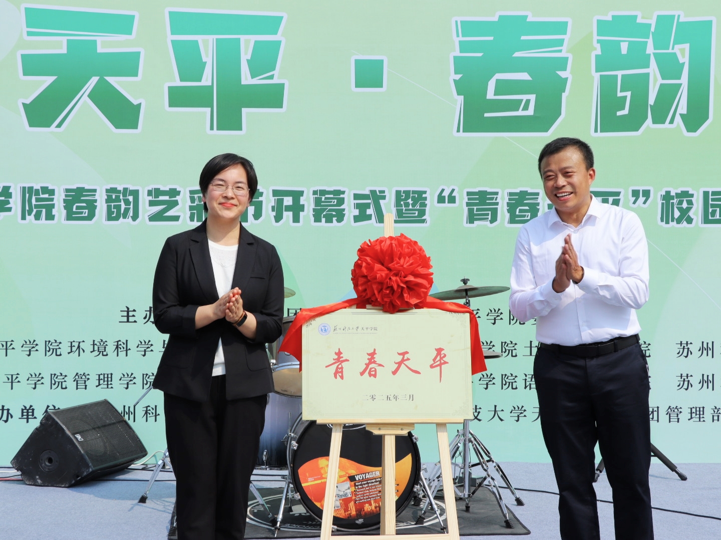 在全场的热切期盼下,“青春天平” 校园文化品牌由学院党委副书记程勇和团委书记刘亚男揭牌,标志着校园文化建设开启了全新的征程,承载着全体师生对未来校园文化发展的无限憧憬。