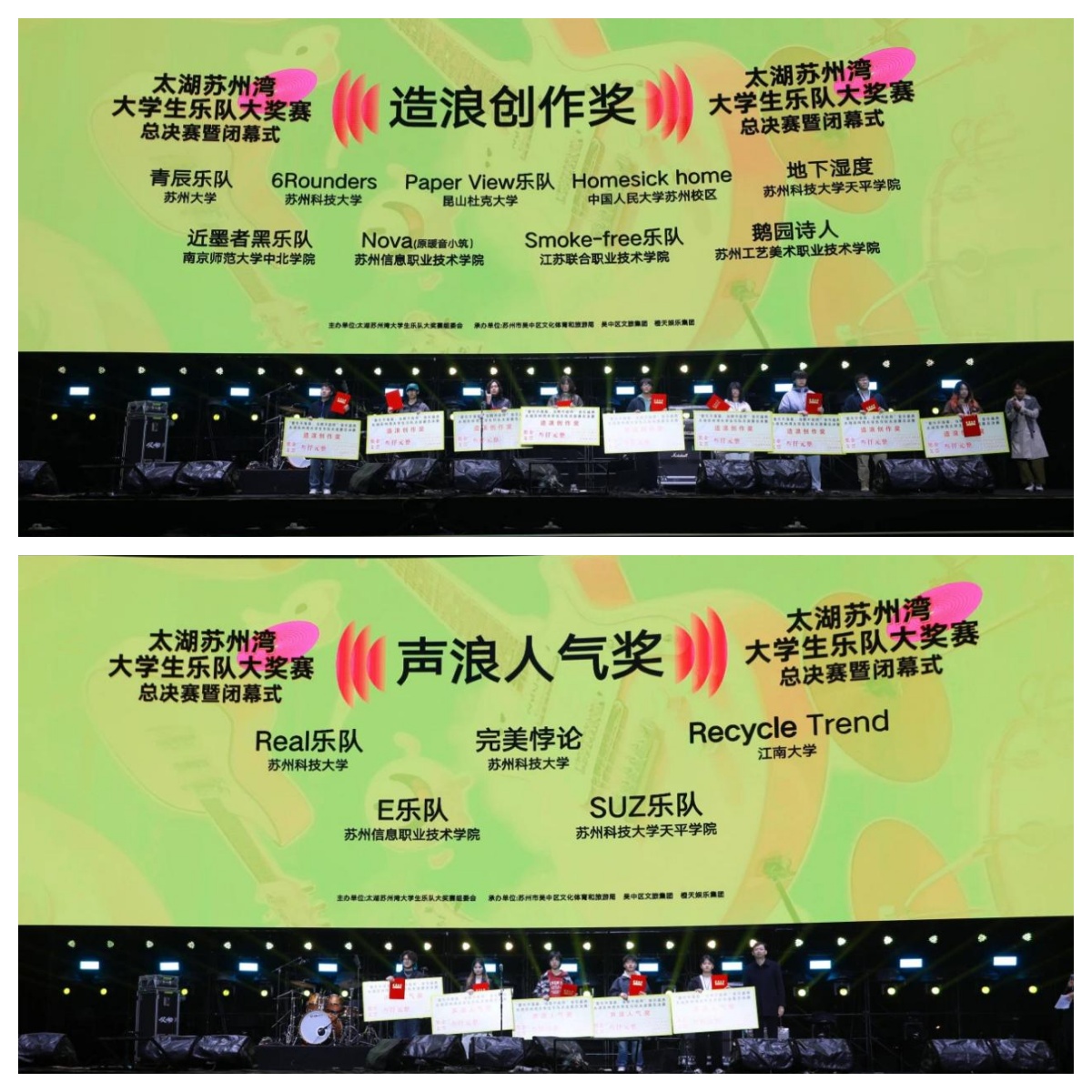 此次大赛历时五个月,经过与近六十支大学生乐队的激烈角逐,bat365官网地下湿度乐队与SUZ乐队分别荣获“造浪创作奖”和“声浪人气奖”。