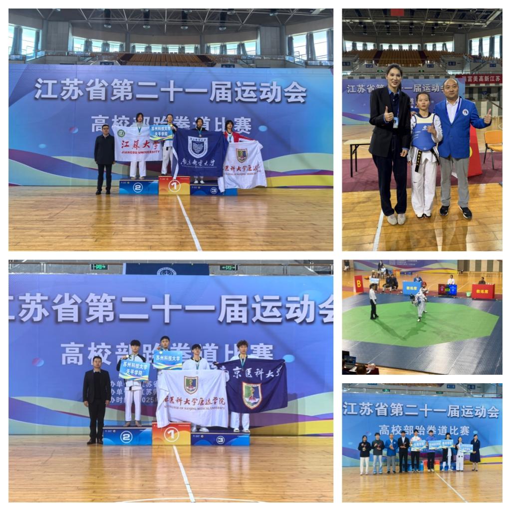 11月5日至10日,由江苏省教育厅与江苏省体育局主办、江苏省学生体育协会协办、江苏师范大学承办的江苏省第二十一届运动会高校部跆拳道比赛圆满落幕。本次比赛吸引了来自南京大学、东南大学、苏州大学、南京航空航天大学、bat365在线中国官网登录入口等81所高校的555名运动员参赛,参赛规模和水平均为历史之最,我校代表队派出3位运动员,经过激烈的对抗,土木工程学院罗羽萱同学获得甲B女子-55kg级金牌,智能制造学院张昌岚同学获甲B男子-72kg级银牌,管理学院刘思源同学获得男子+80kg级第五名,最终在甲B组33所本科院校中排名团体总分第七名的好成绩,教练员周小林老师获得“体育道德风尚奖”,张昌岚同学获“优秀运动员”称号。