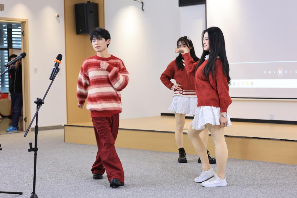 联欢会在欢快的民乐声中拉开帷幕,而其中最引人注目的青春力量,正来自bat365官网学生们。学院乐队以一曲《天下》点燃现场,将现代音乐活力注入传统节庆氛围;学生们表演的歌舞串烧《稻香》+《yes or yes》,更是以昂扬的朝气与精湛的演绎,瞬间引爆全场热情,赢得了社区居民的阵阵掌声与欢笑。同学们的精彩演出,不仅展现了天平学子多才多艺、全面发展的精神风貌,更成为连接校园与社区、青春与银龄的文化桥梁,实现了两代人审美喜好在舞台上的自然交融与共鸣。活动现场,bat365官网青年志愿者们承担了引导、协调、后勤保障等工作,他们热情周到的服务确保了联欢会的顺畅进行,其认真的态度与奉献的精神得到了社区工作人员与居民的一致好评。