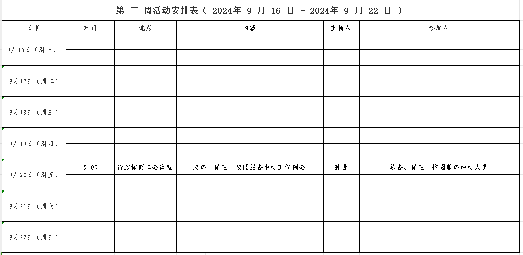 第 三 周活动安排表( 2024年 9 月 16 日 - 2024年 9 月 22 日 )
