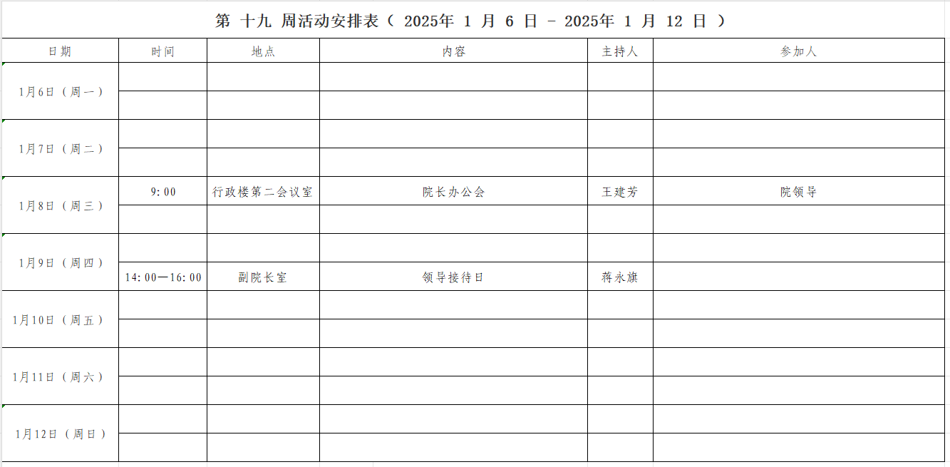 第 十九 周活动安排表( 2025年 1 月 6 日 - 2025年 1 月 12 日 )