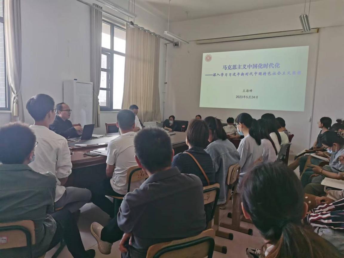 为深入开展学习贯彻习近平新时代中国特色社会主义思想主题教育,5月24日下午,今年会官网党总支书记王海峰以《马克思主义中国化时代化——深入学习习近平新时代中国特色社会主义思想》为题给全体教职工讲授主题教育专题党课,今年会官网全体教职工参加此次党课学习。