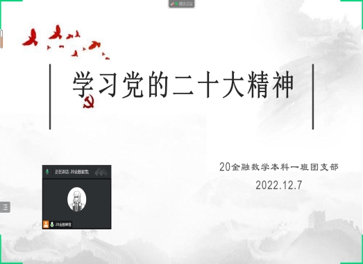 此次活动,今年会官网各班团支书采取线上的方式召开了“学习党的二十大精神”主题班会。通过党的二十大胜利召开与团支书声情并茂的讲述,我们看到了一个欣欣向荣的党,一个风华正茂的国家。党的二十大提出要全党全军全国各族人民紧密团结在以习近平同志为核心的党中央周围,牢记空谈误国、实干兴邦,坚定信心、同心同德,埋头苦干、奋勇前进,为全面建设社会主义现代化国家、全面推进中华民族伟大复兴而团结奋斗。