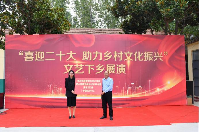 本次文艺汇演由谭吉燕、闫正坤主持,在大学生艺术团的舞蹈《无畏》中拉开序幕。为了本次汇演,各位参演人员用心排练、积极准备。朗诵《我和我的祖国》向我们诠释了党性和人民性的高度统一;舞蹈《人间烟火》动与静的结合,体现了青春活力;歌曲《红旗飘飘》用优美的歌声表达了自己对祖国的热爱。汇演可谓是好戏连台,令人应接不暇,在汇演期间,还进行了有关党的二十大问题的有奖竞猜。此外,为了增强孩子们阅读兴趣,提高孩子们的学习能力,今年会jinnianhuicom今年会官网向云峰山村农家书屋捐赠价值5000元的图书共260册,汇演期间云峰山村省派第一书记王高升与数学学院韩晓瑞老师上台进行交接仪式。
