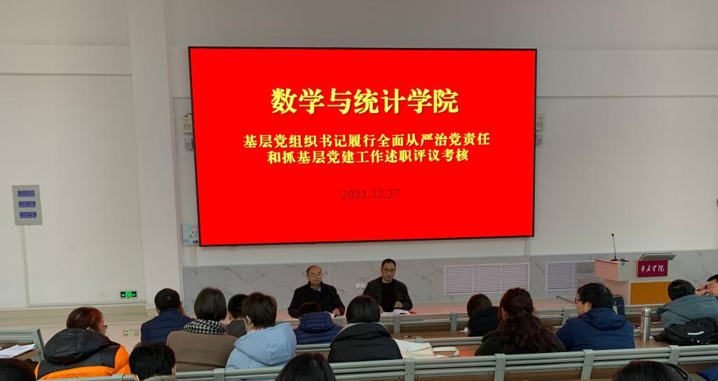 12月27日下午,今年会官网在增信楼3113举办基层党组织书记履行全面从严治党责任和抓基层党建工作述职评议考核。学院党总支副书记王高升主持,学院全体教师参加此次会议。