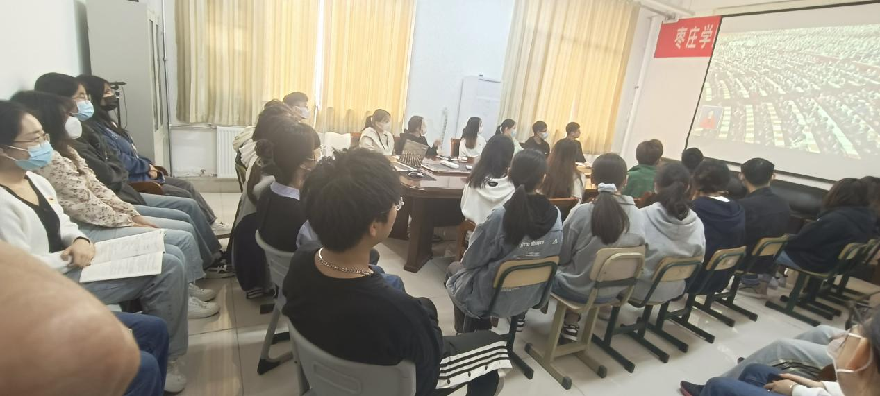 学生党员在会议室集中观看二十大开幕