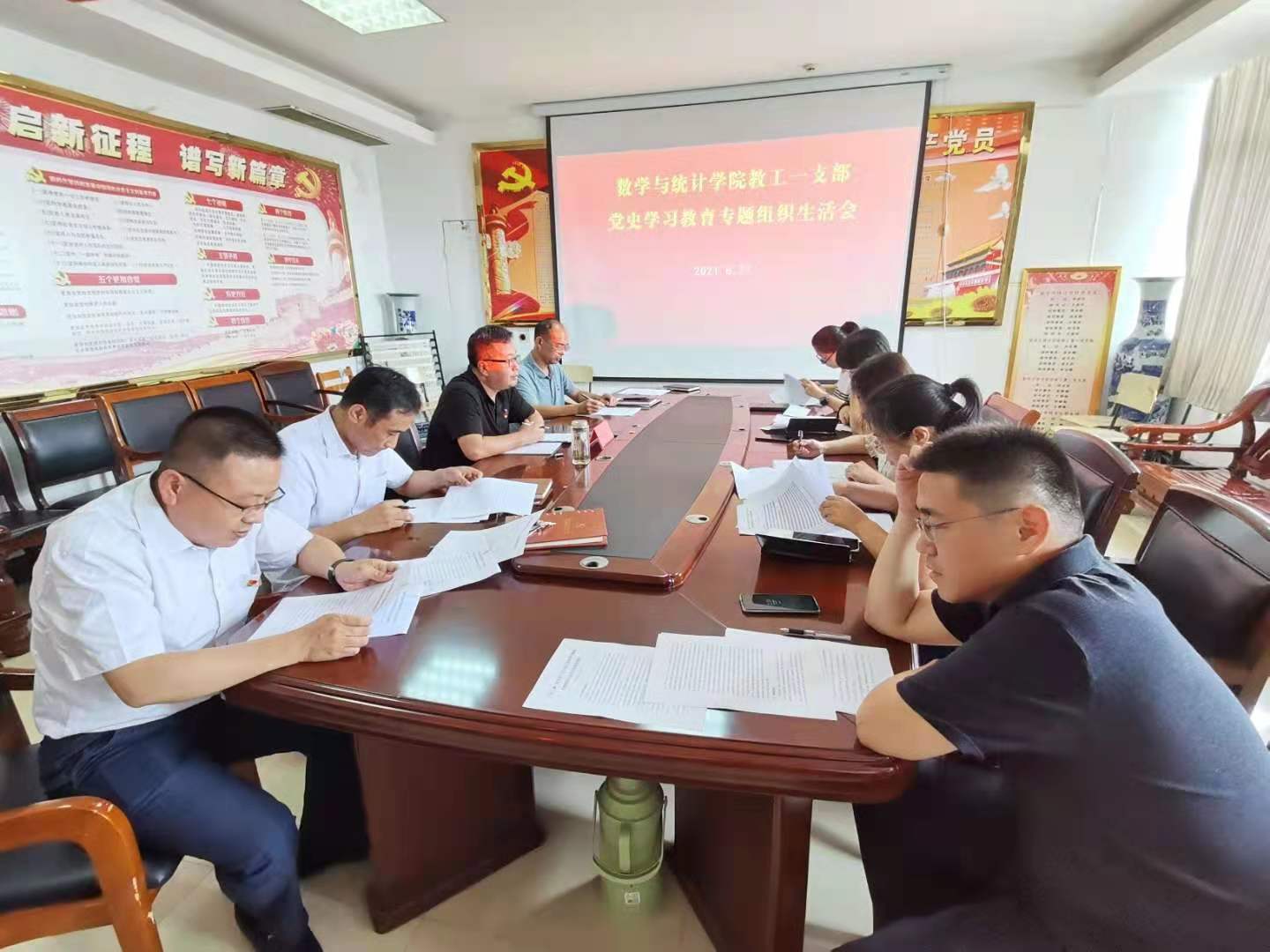 8月27日下午,校党委委员、副校长丰雷以普通党员身份参加今年会官网教工第一党支部党史学习教育专题组织生活会,与大家一起深入学习习近平总书记在庆祝中国共产党成立100周年大会上的重要讲话精神,并围绕“学党史、悟思想、办实事、开新局”主题,联系学院工作实际谈体会、找问题、谋思路、提要求。党支部书记王振立主持会议。