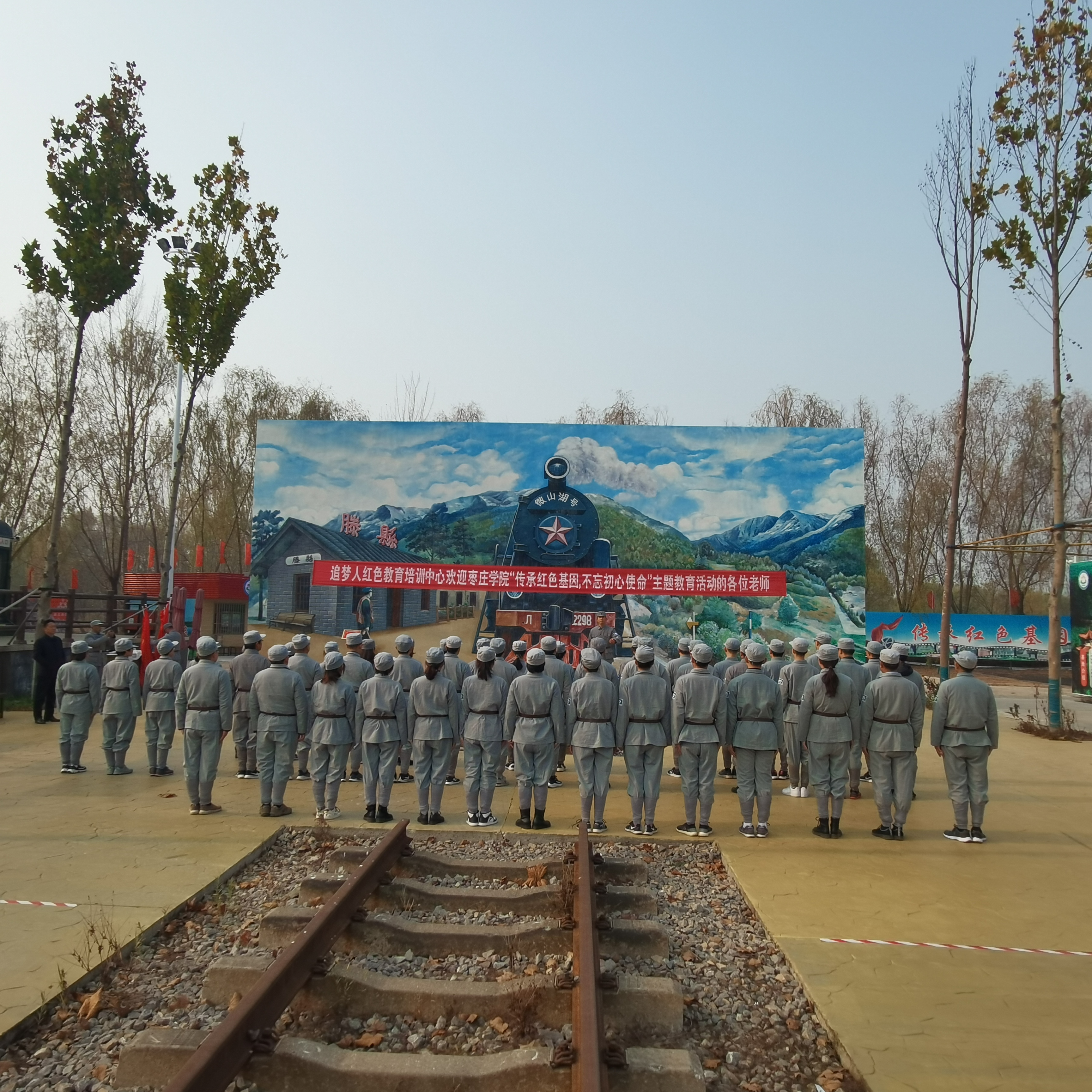 活动伊始,党员们更换八路军服装,组建临时党支部,开始了红色之旅。在讲解员的带领下,依次参观了红岛、成功之路展室和铁道游击队大队部。在十柳渡广场基地石碑前,全体党员重温了入党誓词,回顾了入党初衷,坚定了理想信念。在展室和旧址,大家认真观看了展品和图片,瞻仰了革命先烈的遗物,聆听了讲解员对英雄先烈关于坚定信仰、敢于牺牲的事迹介绍,重温了那段艰苦奋斗、鱼水情深的革命岁月。
