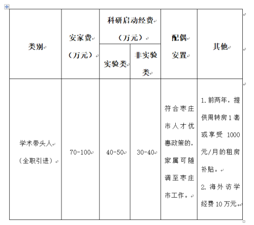 学术带头人入职后,享受国家规定的工资、福利等待遇,同时学校为人才提供安家费、科研启动经费、海外访学经费、周转房(或租房补贴)等人才政策,具体待遇根据个人学术水平等情况协商确定。