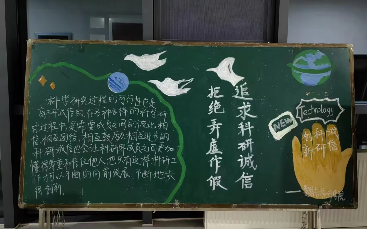 在科研诚信宣传教育主题月活动中,开展了会议传达、板报展示、主题班会等多种活动,强调同学们要以诚信为本,在论文创造、科级创新方面不得出现抄袭、弄虚作假等违法行为,不得损害集体的利益,主动遵守负责任的道德原则,共同维护科学界的一方净土,并让学生了解了科技工作者发表学术论文中的“五不准”,展现了在科研过程中的诚信问题,加大了科研诚信宣传,为创造一支优良的科研团队提供了人才基础。