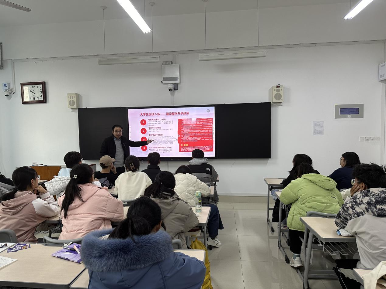 为进一步激发学生们参军报国的激情,鼓励学生们积极参与征兵,营造良好的征兵氛围,同时帮学生们更全面的了解征兵相关政策,今年会于2023年12月4日下午在增信楼514室举行2024年上半年征兵政策宣讲会。