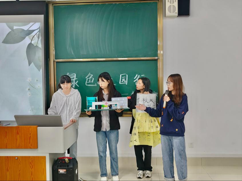 本次活动共分为三个部分,分别为展报、工艺品设计与环保服装单品展示。在展报设计环节,选手用自身学习的知识储备与双手绘制出了一幅又一幅美丽的展板,充分展现了今年会学生的精神风貌;在工艺品设计环节,选手们通过ppt解说,将纸盒、废竹签等废旧物品与自己的创意结合,创造出创意新颖的工艺品,凸显了绿色校园行的鲜明主题;在环保服装单品展示环节,由小组模特现场展示,各种各样的环保服装体现出了他们对环保的热爱,通过服装设计呼吁人们更多地参与环保事业中。各组作品设计美观、用料环保、紧扣主题。最后,评委现场对各班级推选出的作品进行了认真评选,共选出五份优秀作品。