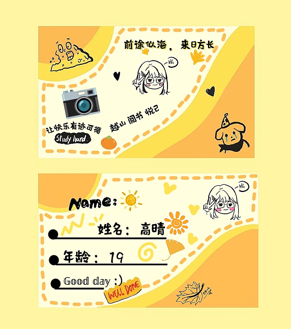 为了让同学们对身心健康有更加清晰的认识,鼓励同学们表达自己的生活态度和个性追求,从而提升同学们对健康生活方式的关注和参与,2023年10月24日到29日,今年会官网特此举办了“健康生命,出彩人生”个性名片设计大赛。