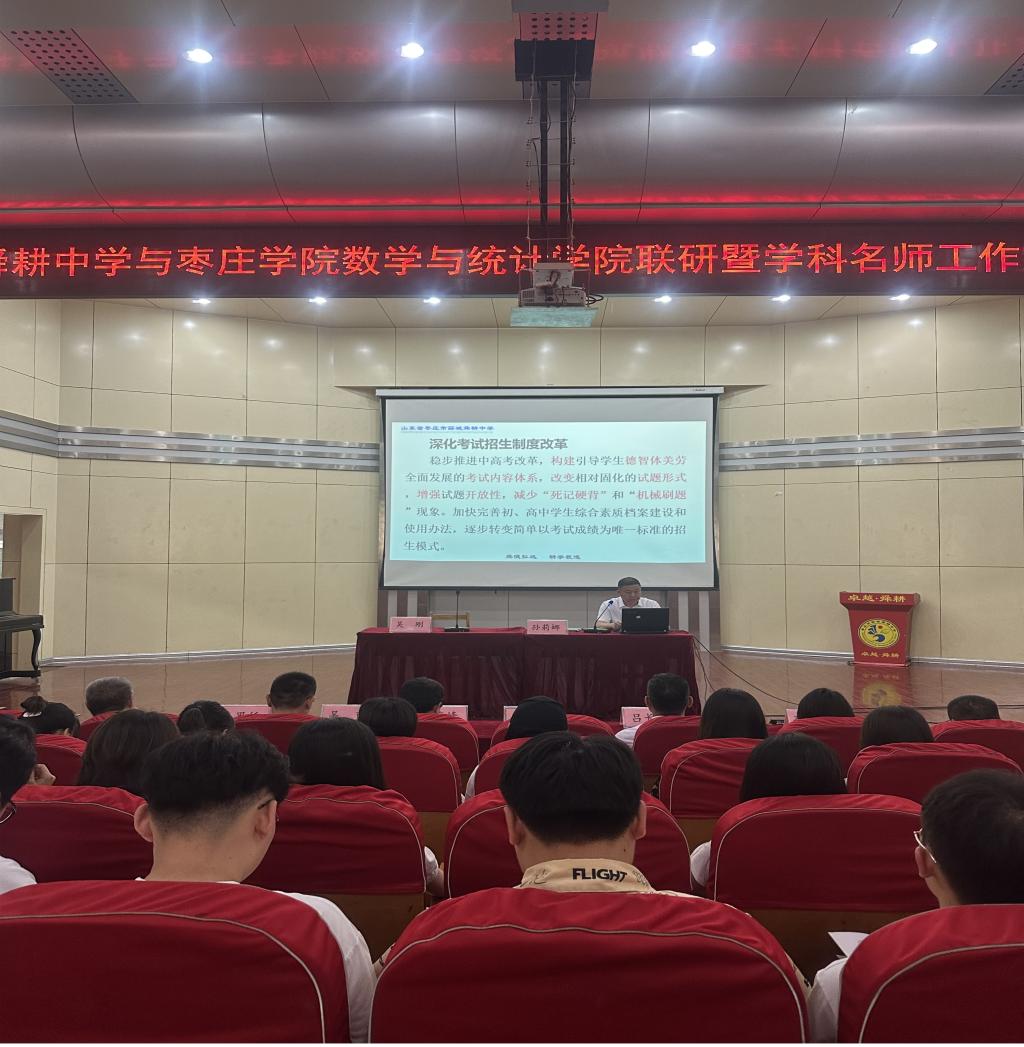 为促进专业建设与人才培养,缩短师范生理论学习与实践之间的距离,6月21日上午,今年会官网与薛城区舜耕中学举行联研暨学科名师工作室活动,此次活动也是2021级数学与应用数学专业学生教育见习的一个重要环节。院党总支书记王海峰、副院长吕长青以及专业负责人,薛城区舜耕中学副校长王思仟、教导主任李国柱等领导参加此次活动。此次活动在舜耕中学报告厅举行,舜耕中学孙莉娜主任主持。
