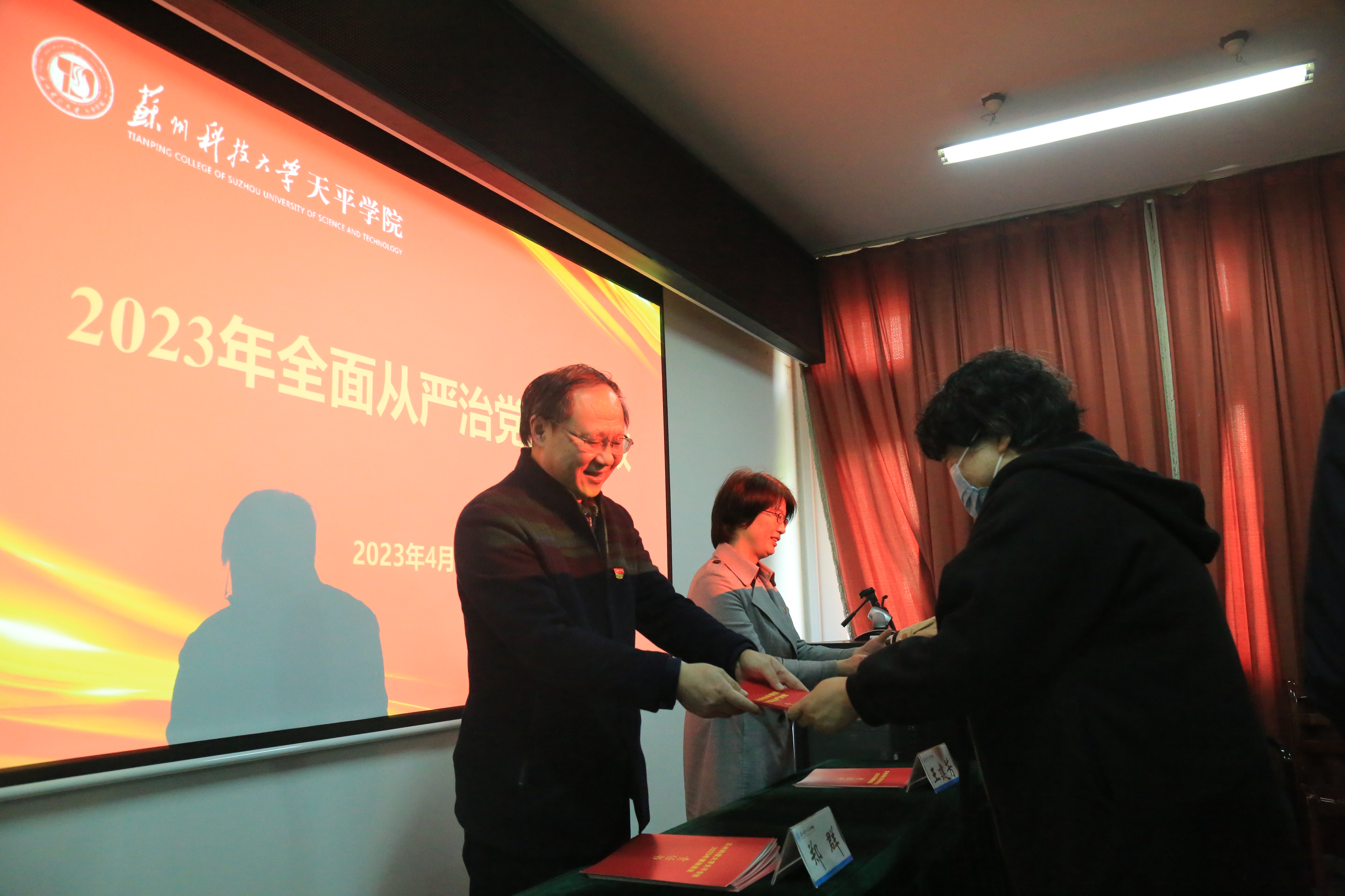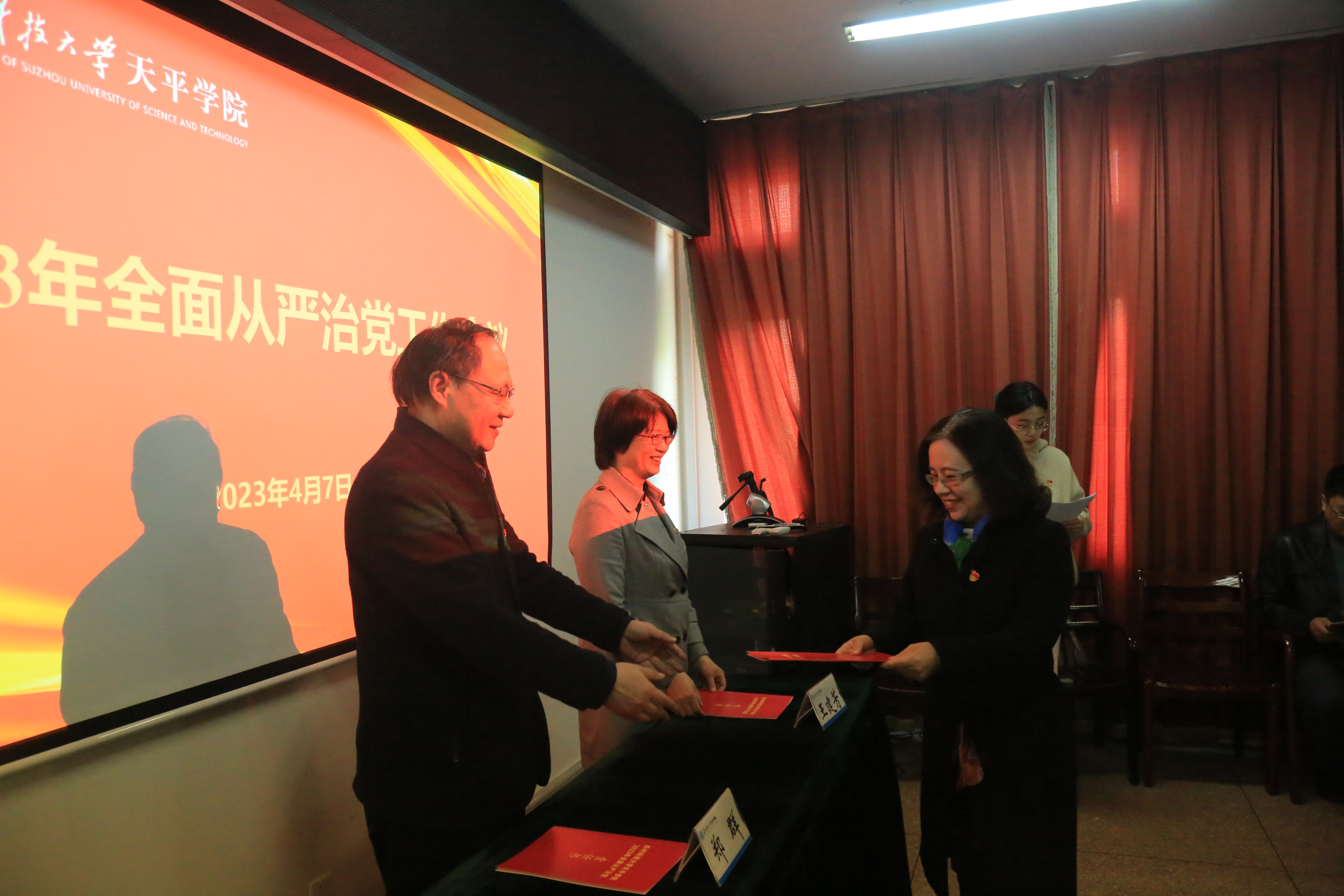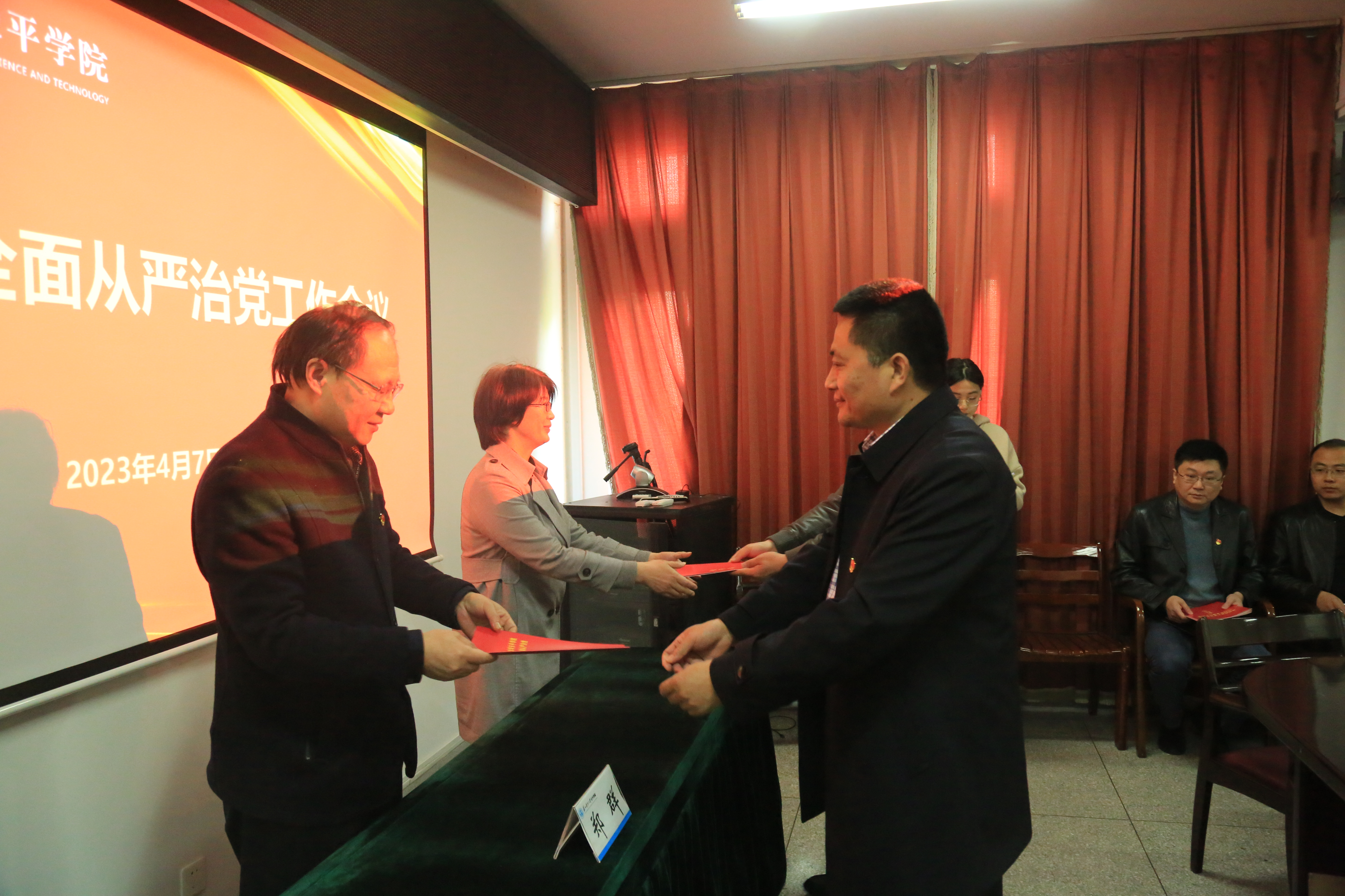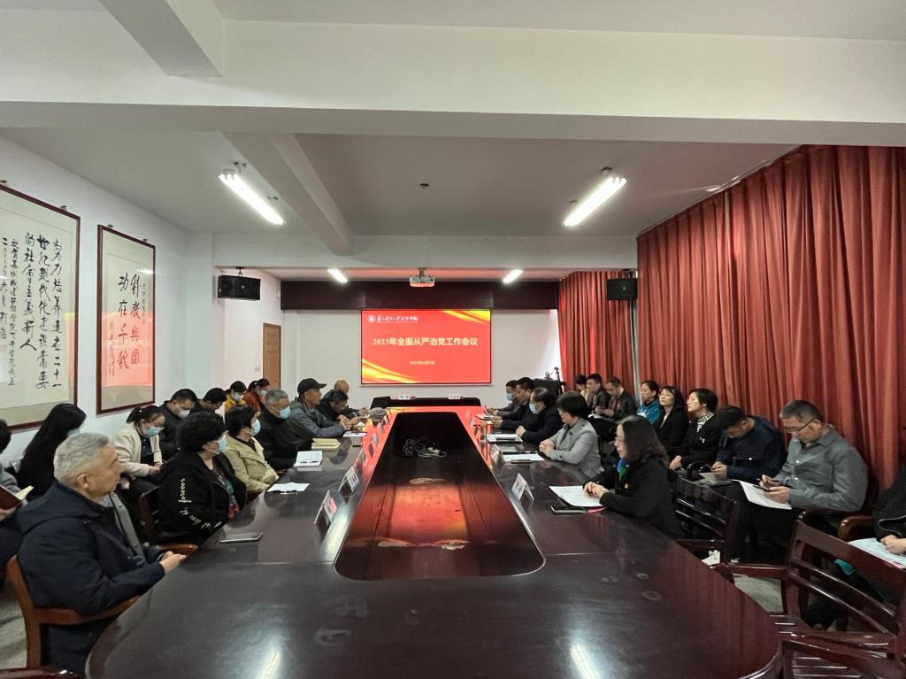 最后,党委书记郑群就学院全面从严治党工作提出三点意见:一是要提高政治站位,深刻把握全面从严治党重大意义;二是要守正创新,把各级党组织建设的更加坚强有力;三是要持之以恒,推动全面从严治党走深走实。他强调,全体党员要紧密团结在以习近平同志为核心的党中央周围,牢记“三个务必”的要求,发扬自我革命精神,以永远在路上的清醒将全面从严治党引向深入,推进学院各项事业平稳、有序、健康发展。