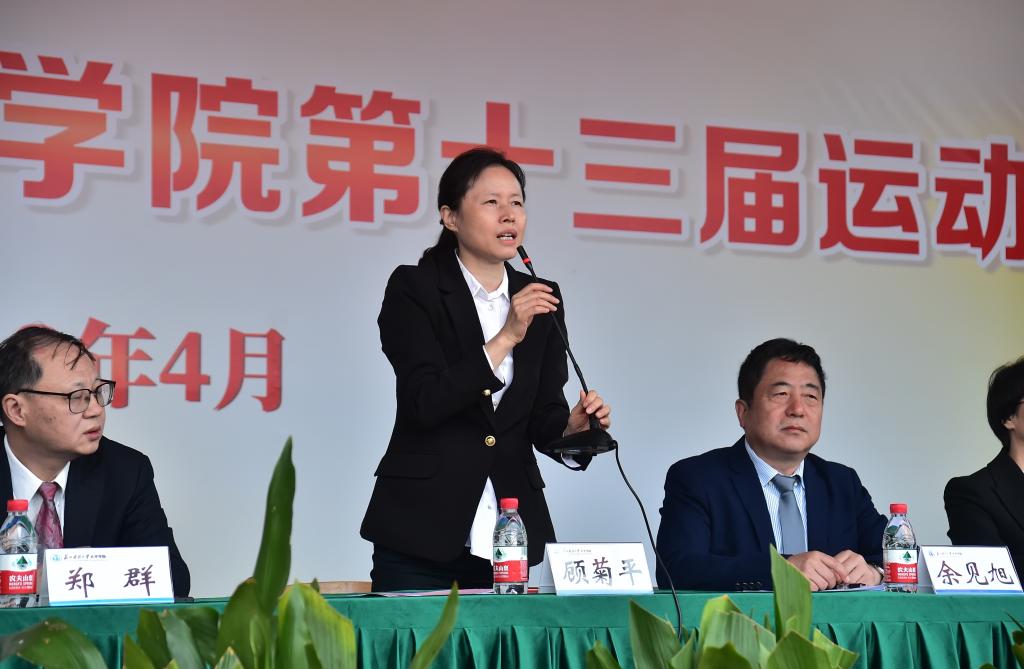 王建芳院长为本届运动会致开幕词,她充分肯定了近年来学院在院风学风、内涵建设、人才培养、科研创新等各项事业中取得的成绩,强调体育对于国家强盛、民族振兴有着重要意义,希望全体师生以本届运动会为契机,积极参加体育锻炼,形成体育运动常态化的良好氛围,把本届运动会办成安全、热烈、有特色的盛会。