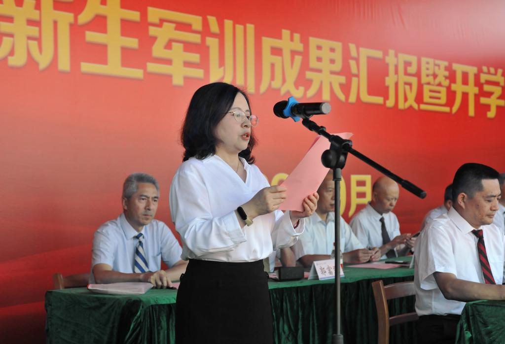 副院长张婧宣读了《关于表彰2023级新生军训先进集体和优秀个人的决定》,希望2023级全体新生继承和发扬军训中的优良品质与作风,敢于拼搏,勇于竞争,不断提升个人的综合素质。