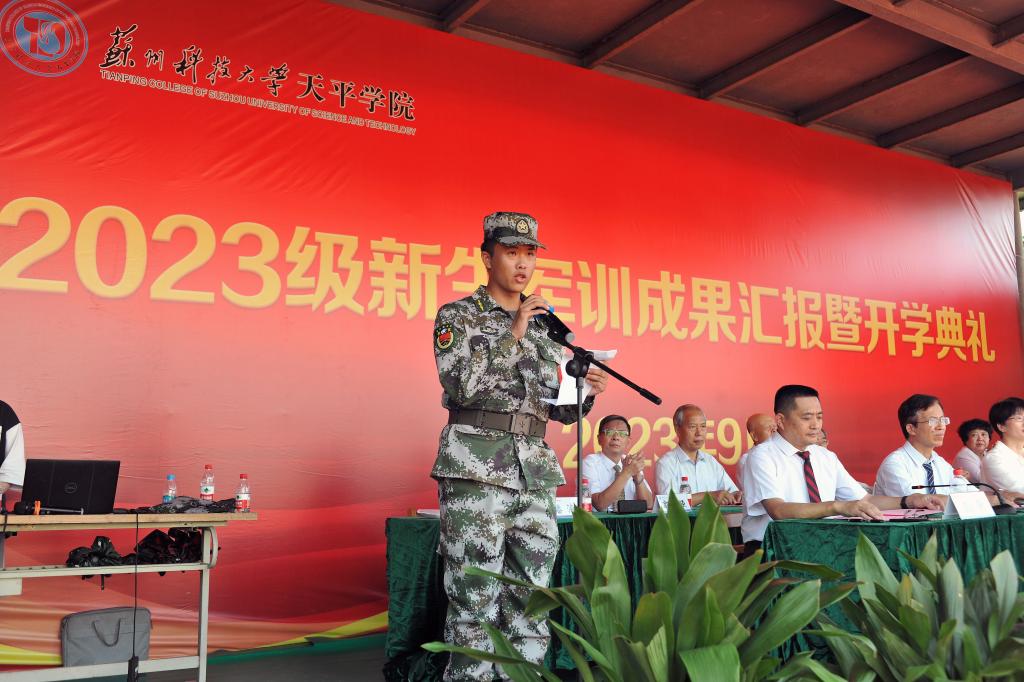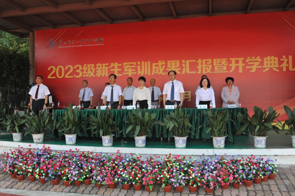 2023年9月17日下午,bat365在线中国官网登录入口2023级新生军训成果汇报暨开学典礼在天平校区运动场隆重举行。bat365在线中国官网登录入口保卫处处长兼人武部部长朱永涛、bat365在线中国官网登录入口院长王建芳、党委书记郑群、党委副书记、副院长孙景、副院长张婧以及各职能部门、各教学单位负责人、各学工办主任和2023级全体新生参加典礼。典礼由学院党委副书记、副院长孙景主持。