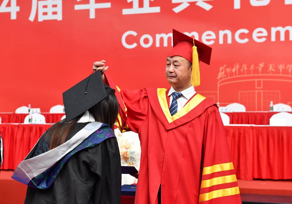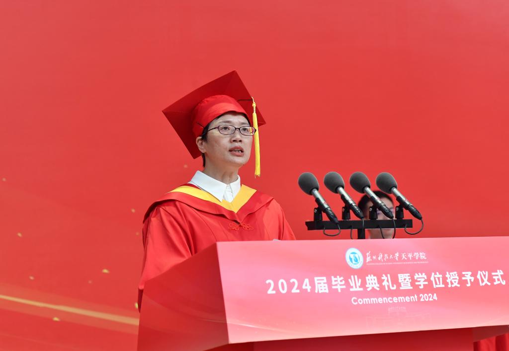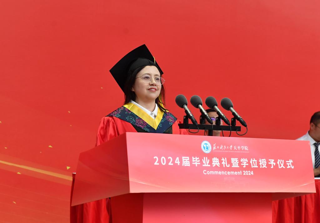 院长王建芳发表讲话,向全体毕业生顺利毕业表示祝贺,并提出殷切希望:一是希望毕业生同学胸怀天下,勇担使命,以青春的激情、青春的奋斗、青春的力量,创造属于自己的辉煌篇章;二是希望毕业生同学务实求真,笃行致远,在不懈奋斗中实现卓越引领,与祖国同心同梦、与时代同向同行;三是希望毕业生同学勤学善思、自信自强,保持探索的愿望和学习的渴望,养成终身学习的良好习惯;四是希望毕业生同学严以律己,廉洁修身,始终牢固树立不负人民的家国情怀,在成长黄金期系好廉洁修身的“安全带”。