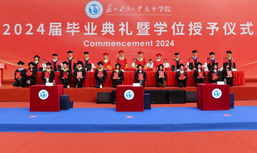 6月13日下午,bat365在线中国官网登录入口2024届毕业典礼暨学位授予仪式在石湖校区体育馆隆重举行。校领导张新亚、李勇、崔雪丽,学院领导、苏州农业职业技术学院和苏州市职业大学相关领导、学院相关职能部门和教学单位负责人、全体辅导员、全体毕业生和家长代表参加了典礼,典礼由学院副院长张婧主持。